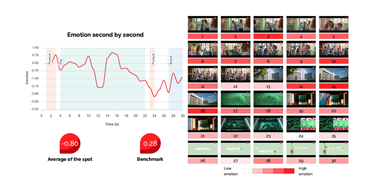 - Un vasto database, con oltre 400 spot pubblicitari già analizzati, fornisce punti di riferimento per diversi settori di mercato.