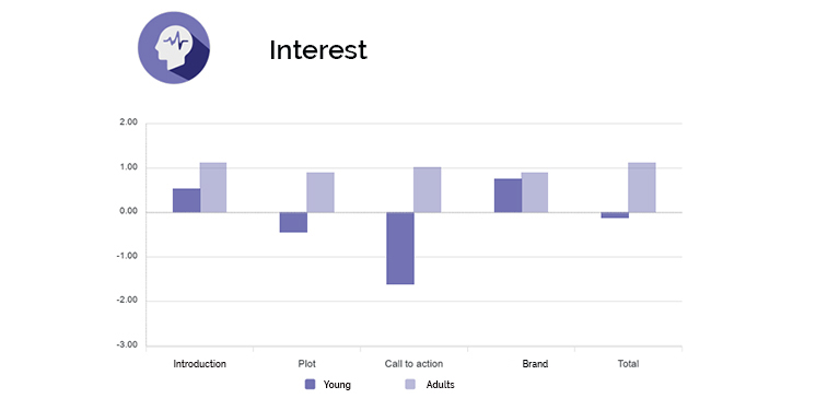 - Valutare l'efficacia di una pubblicità in termini di attenzione, emozione, interesse e sforzo cognitivo, sia per l'intera comunicazione che per segmenti di interesse (ad esempio prodotto, claim, brand, testimonial).